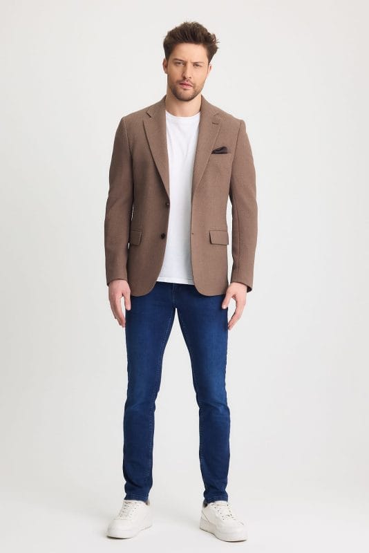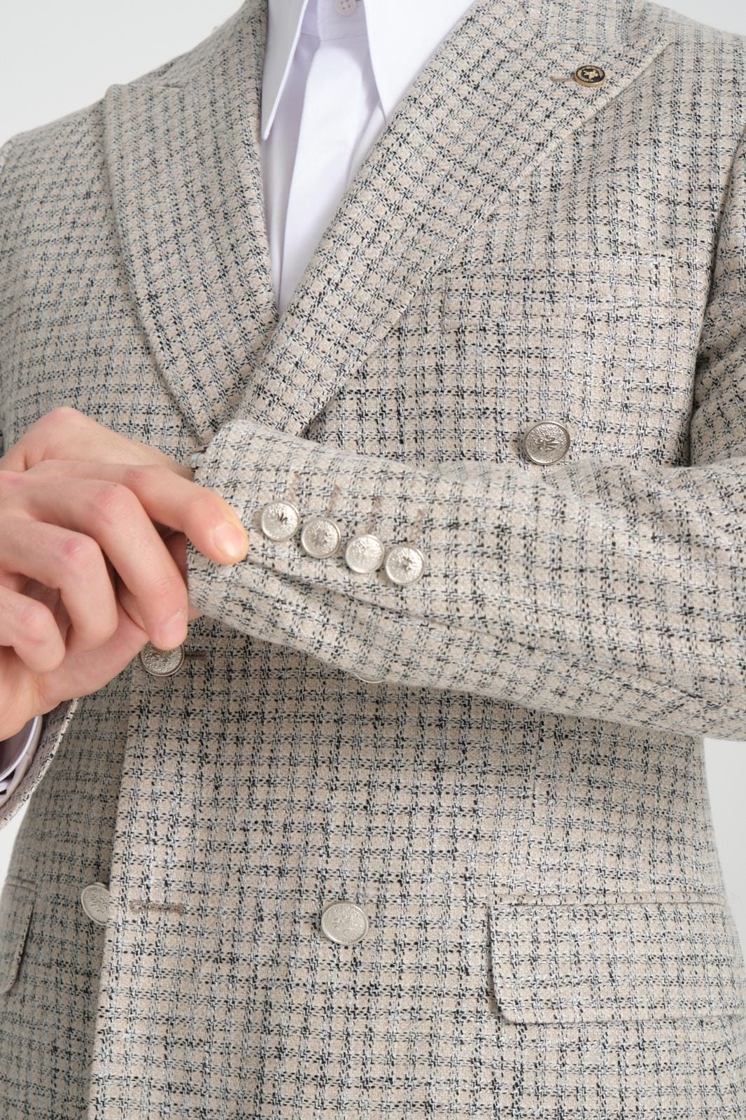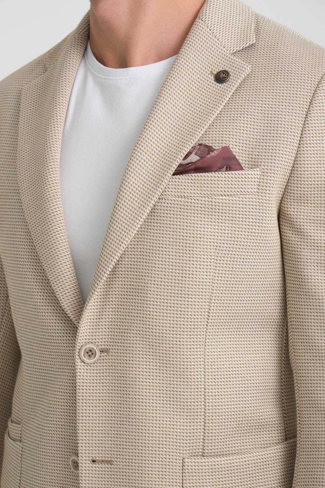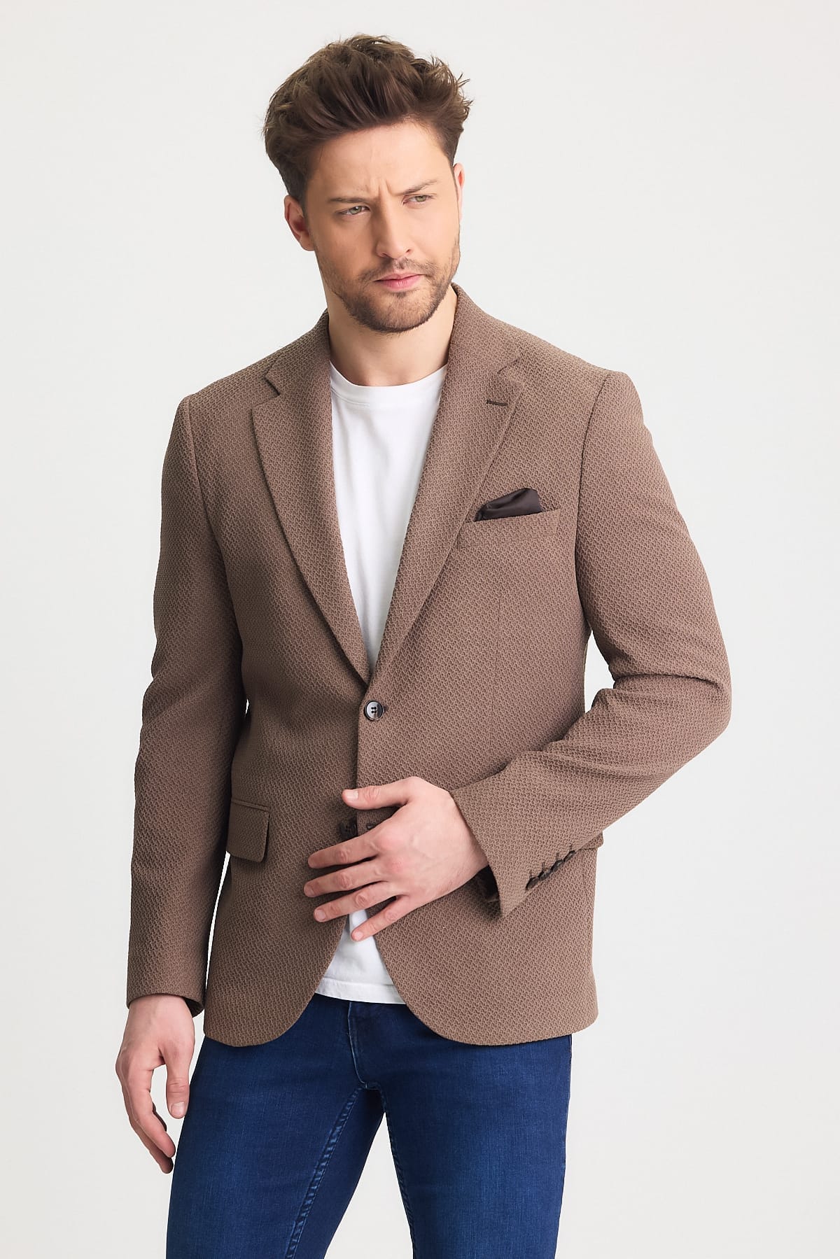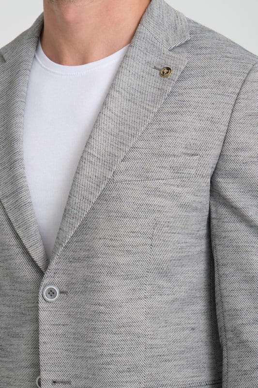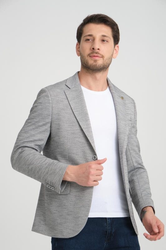 Gofre Desen Gri Slim Fit Torba Cep Sivri Yaka Blazer Ceket