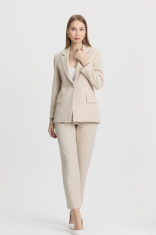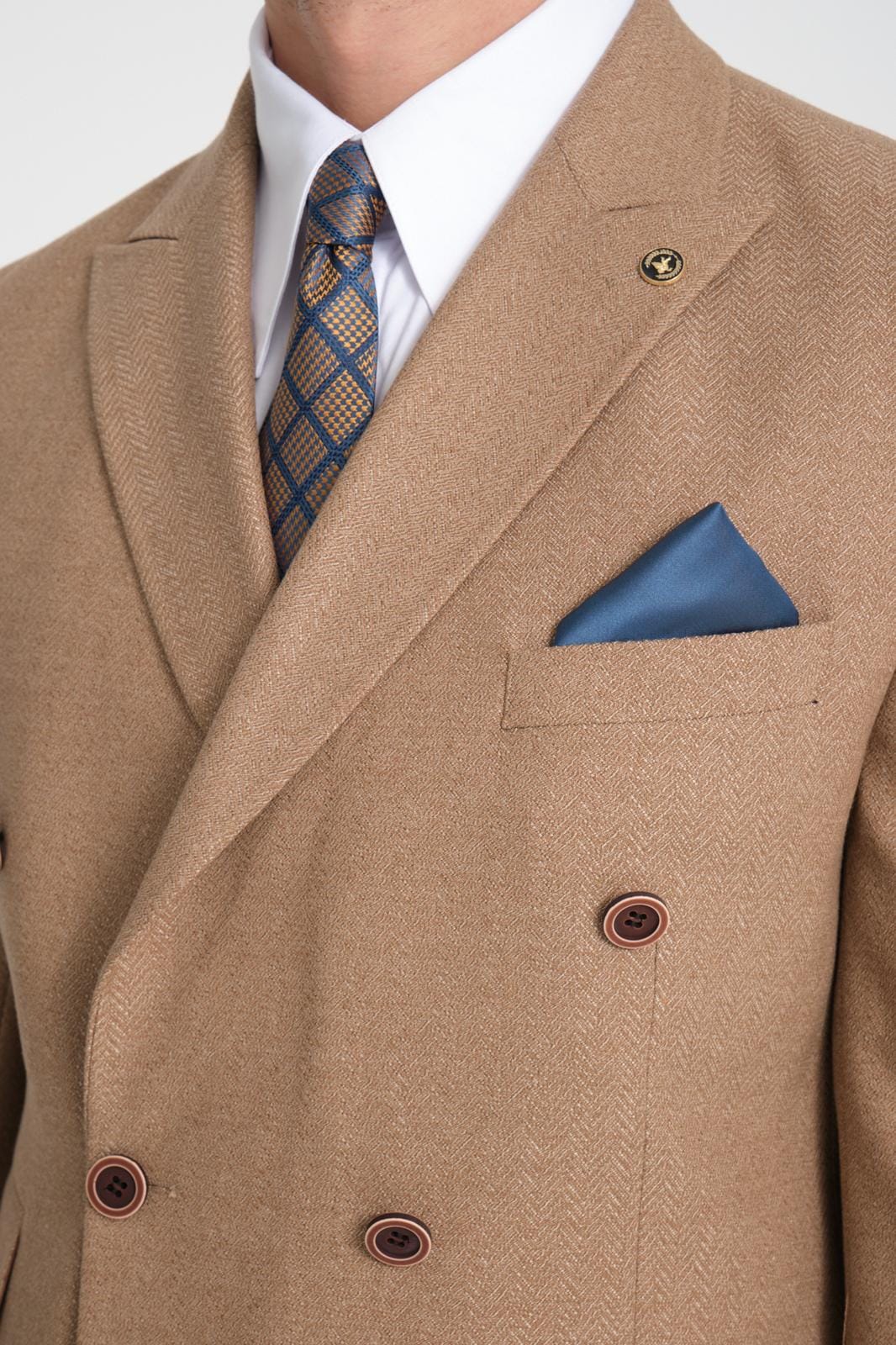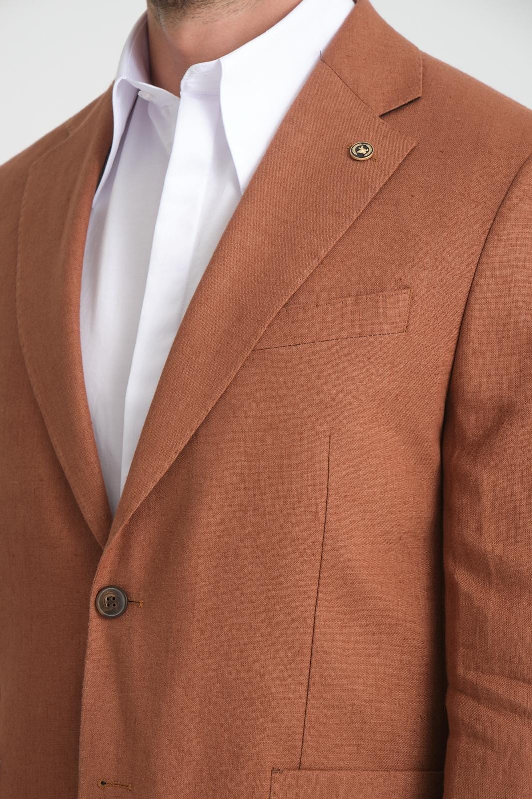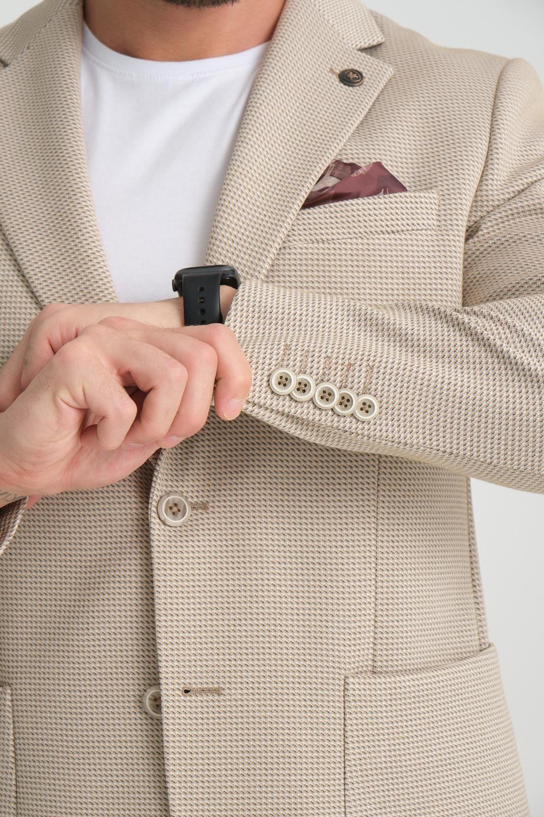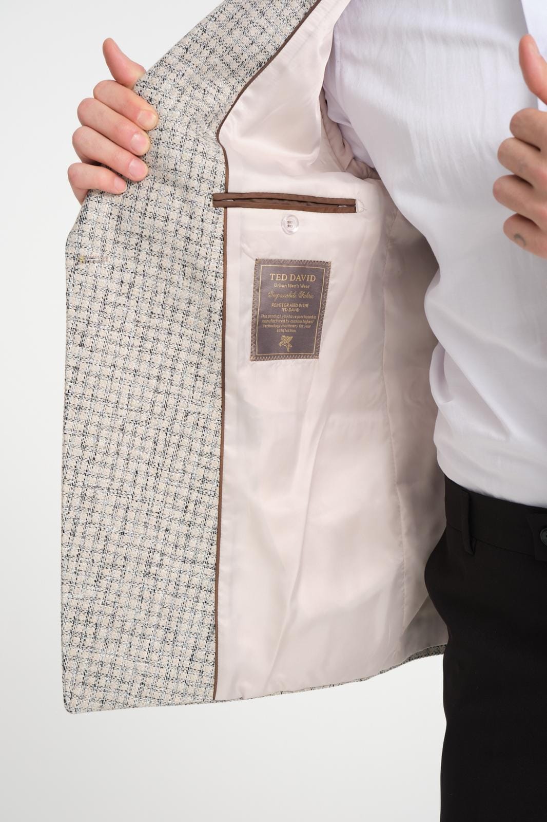 Gofre Desen Gri Slim Fit Torba Cep Sivri Yaka Blazer Ceket