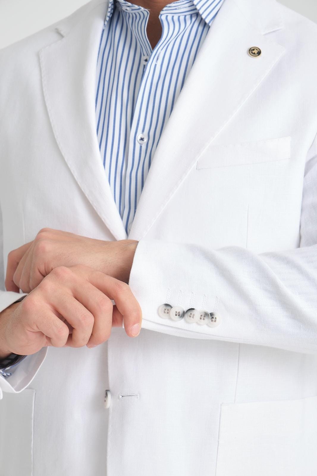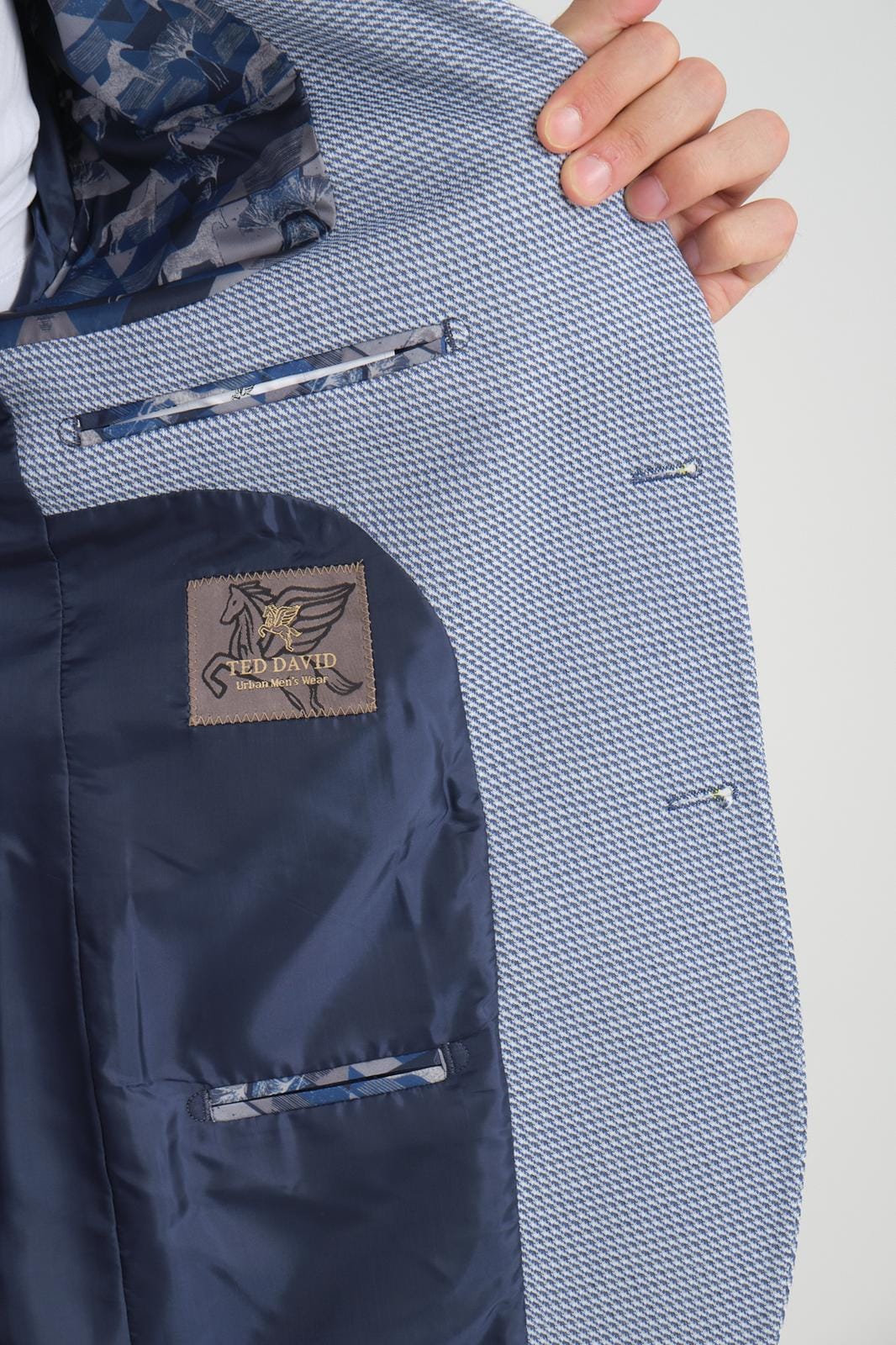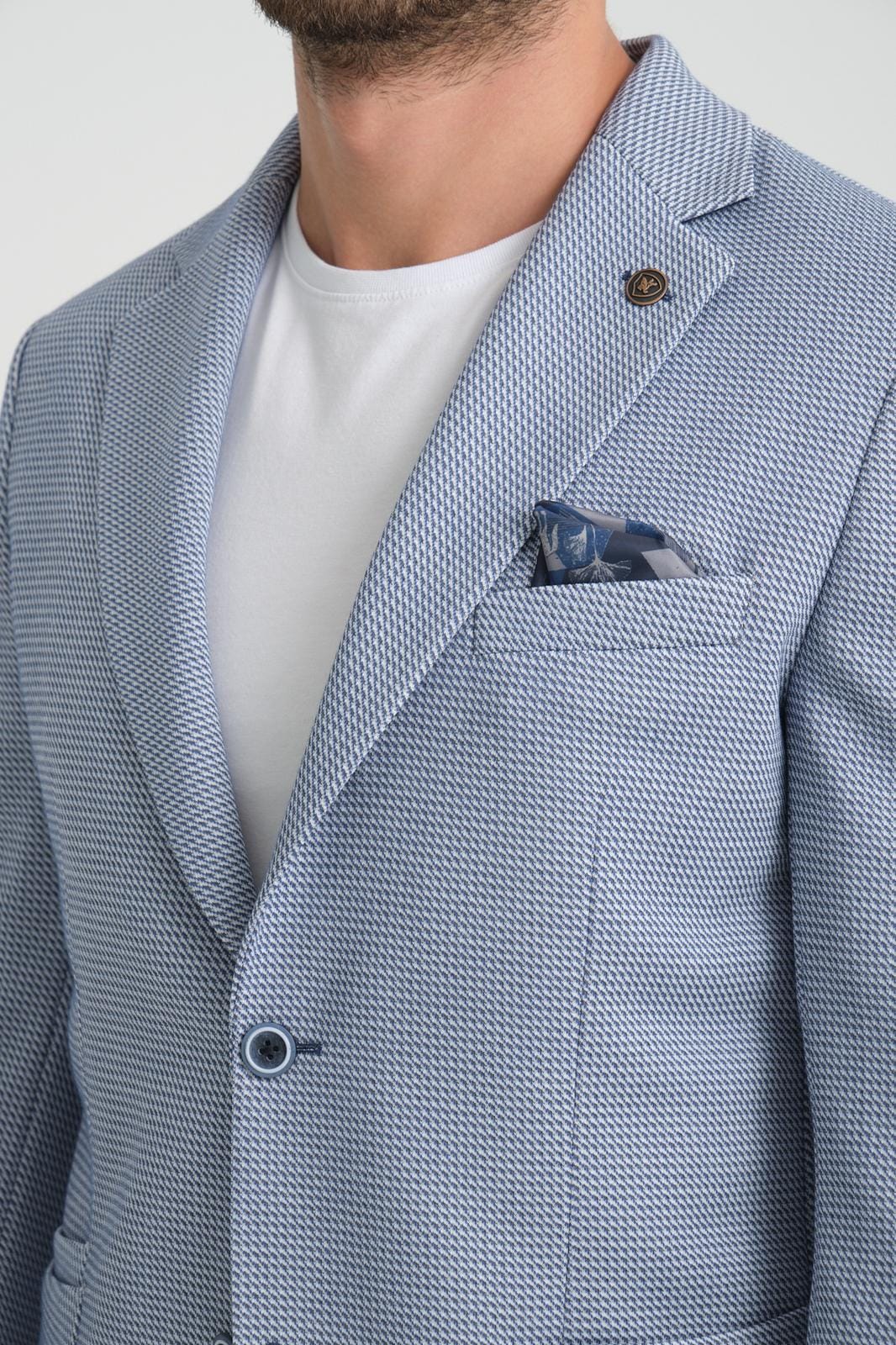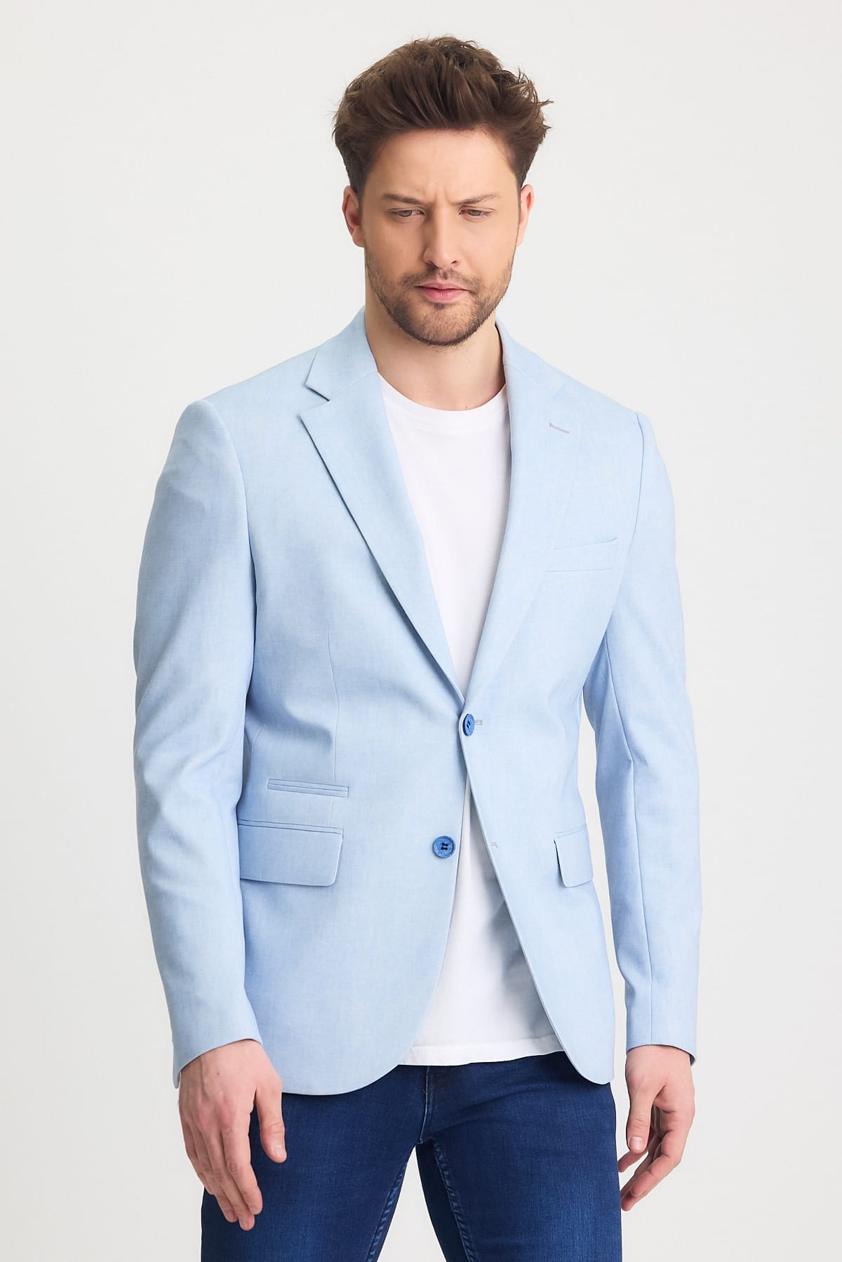 Açık Mavi Çizgi Dokulu Slim Fit Ceket